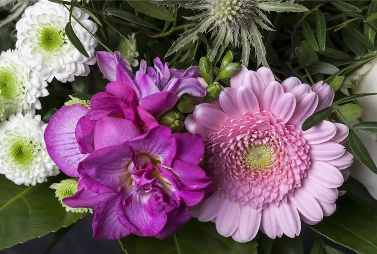 Freesien sind Knollenpflanzen aus Südafrika. Es gibt insgesamt 16 Arten mit mehr als 300 Sorten, deren Ansprüche an den Lebensraum stark variieren. Während die einen sandige Böden im Tiefland akzeptieren, leben die anderen im Gebirge. Zwischen vier und zehn trichterförmige Blüten entwickeln sich an einer Seite des Stängels. Manche Arten tragen gefüllte Blüten an mehr als drei Blütenstängeln pro Pflanze. Die Bandbreite an Farben ist beinahe unerschöpflich und sogar mehrfarbige Blüten sind keine Seltenheit. Das Schwertliliengewächs, das symbolisch für die Unschuld steht, ist ein wahrer Hingucker, der auch im Duftgarten eine gute Figur macht. Darüber hinaus sind Freesien dank ihrer anmutigen Figur und dem betörenden Duft als Schnittblumen beliebt.